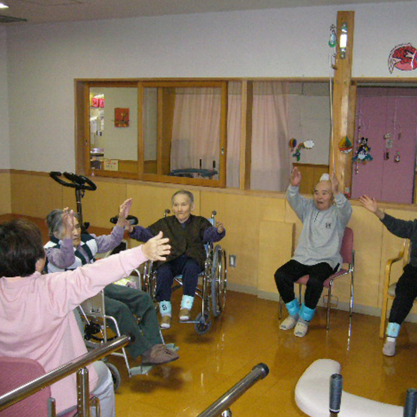 通所されることにより、昼間の一定期間のあいだ、適切な看護・介護のもとでリハビリテーション・食事・入浴・送迎等のサービスをいたします。また、通所サービスをお受けになることにより、ご家庭における介護者の精神的・身体的なご負担を軽減いたします。
